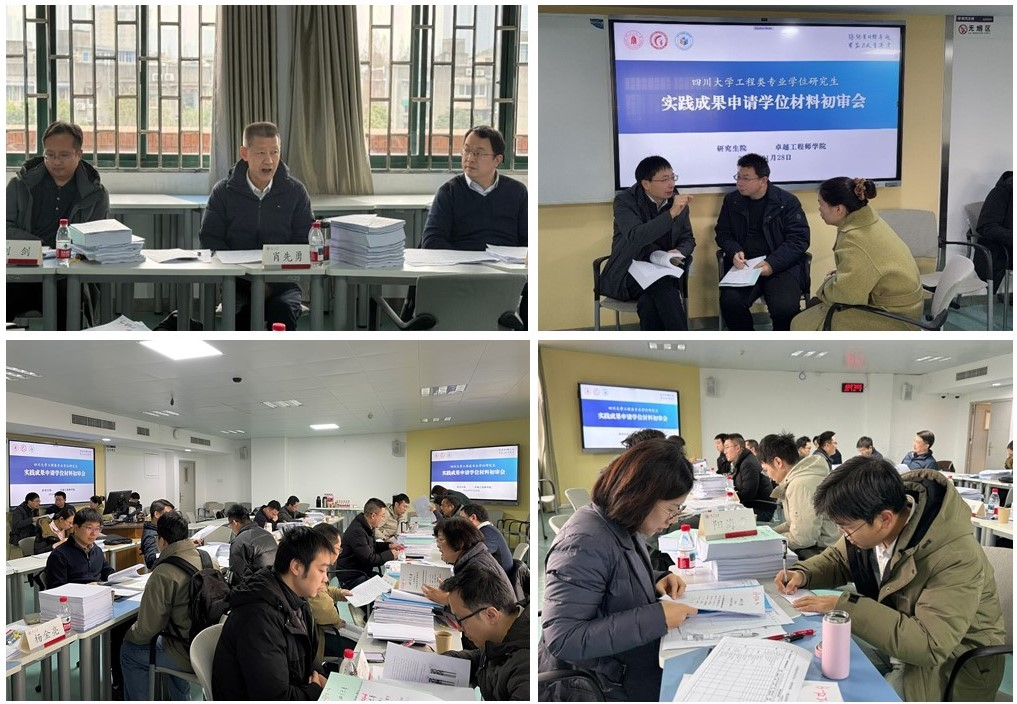 来自机械工程学院、电气工程学院、建筑与环境学院、化学工程学院、高分子科学与工程学院、生物治疗全国重点实验室、原子核科学技术研究所等培养单位的校内专家,以及来自中航工业、中核集团、中国石油、四川省生态环境科学研究院等合作单位的行业专家共同组成专家组,对硕博士研究生提交的实践成果进行集中评阅。评审专家围绕成果的工程价值、技术难度、创新贡献及可展示性等维度逐项评议,并与研究生开展“一对一”深度交流,现场“诊断”问题、提出修改建议,切实发挥校企专家组协同把关作用。